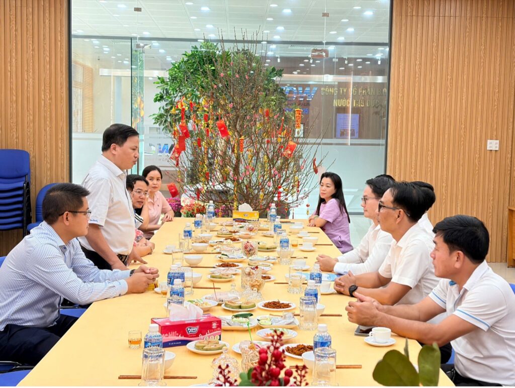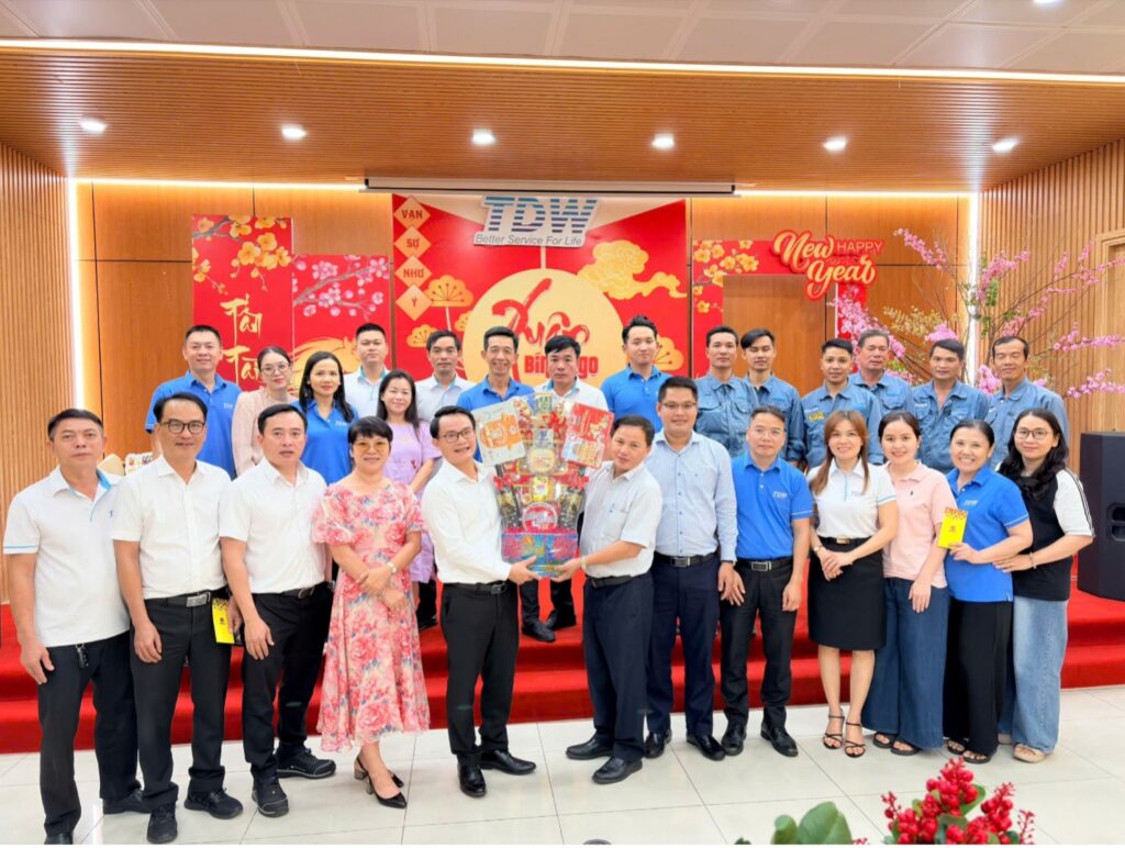 Chiều ngày 13-02-2026 (26 tết) Lãnh đạo và đại diện Tổng công ty cấp nước Sài Gòn (Sawaco) đến tặng quà và chúc tết Ban lãnh đạo và CBNV Công ty Cổ phần B.O.O Nước Thủ Đức. Thành phần Đoàn Sawaco gồm có Ông Đặng Đức Hiền – Phó Tổng Giám đốc, Ông Đinh Hữu Lan – Phó Chánh văn phòng, Bà Vũ Nguyên Thiên Kim – Kiểm soát viên chuyên trách, Tại buổi gặp gỡ Ông Đặng Đức Hiền – Phó TGĐ Tổng Công ty Cấp Nước Sài Gòn đã có đôi lời phát biểu động viên, thăm hỏi, chúc Tết đến tập thể CBNV Công ty BOO, đồng thời đề nghị Công ty BOO tiếp tục duy trì ổn định sản xuất, thực hiện quy chế phối hợp giữa hai bên để đảm bảo an toàn cấp nước phục vụ người dân TP trong dịp tết nguyên đán Bính Ngọ. Đại diện phía Công ty BOO, Ông Nguyễn Sơn Thắng – TGĐ Công ty tiếp nhận những lời chúc tết, thăm hỏi, động viên của Tổng công ty và hứa sẽ tiếp tục duy trì ổn định sản xuất, thực hiện tốt quy chế phối hợp giữa hai bên để đảm bảo an toàn cấp nước cho người dân Thành phố và chúc cho quan hệ hợp tác của hai bên được phát triển sâu rộng hơn nữa. Trước khi chia tay, hai bên đã cùng chụp hình lưu niệm.